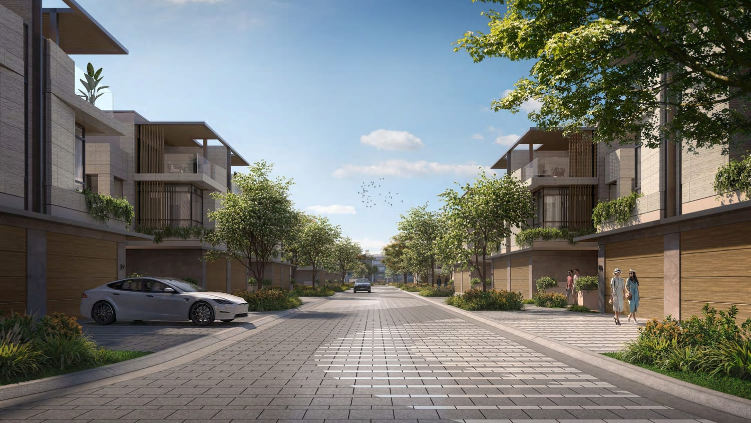 Project general facts Discover a neighbourhood where vibrancy is a part of the landscape. Feel the energy in the flowing paths, run across the rippling hills, dive into the action at the centre of it all. When you live here, you’re never far from what’s happening. Amara is an ode to Tilal Al Ghaf – the final brushstroke of a masterpiece, completing the community. Centred around a stunning lagoon bordered by white sandy beaches. The community features nearly 500,000 square metres of parks, green open spaces and treescapes, with walkable neighbourhoods interconnected by 18 kilometres of walking trails, and 11 kilometres of cycling and jogging tracks, all set in lush landscaping. A world of culinary experiences, signature Majid Al Futtaim retail experiences and a renowned international school are conveniently located just a short stroll away. With all the bliss and comfort you could ever dream of, this is the hillside way of life. The twin villas showcase an interplay between pairs of adjoining volumes, recessing one-third of each twin villa to create a space for the entrance. The exterior architecture and design in turn create a dynamic street façade. Platonic volumes interlocking, reinforced with the simple elegance of the subtly textured and patterned finishes. Semi-outdoor areas introduce greenery into the living quarters, facing the community park on one side and the public realm on the other – beautifully framing the scenic landscape.