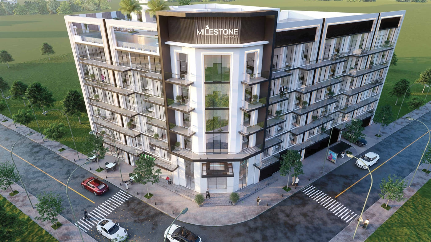 Project general facts Milestone Residences by Axiom is an exclusive haven of 51 contemporary apartments, designed for those who seek a balance between urban convenience and natural beauty. Each space is curated to be a portrait of luxury and privacy, offering a unique living experience in the heart of Jumeirah Village Triangle. Design philosophy at Milestone Residences intertwines modern aesthetics with functional elegance. The clean lines and minimalist approach reflect a commitment to quality and craftsmanship, creating spaces that are both timeless and forward-thinking. Milestone Residences by Axiom presents an architectural masterpiece: a statement of intent and a commitment to excellence. The facade blends sleek modernity with subtle grandeur, inviting residents into a world where every detail epitomises luxury. Step into a sumptuous embrace at Milestone Residences reception area, where every arrival is celebrated. The space harmonises nature with design, featuring natural touches amidst contemporary elegance, ensuring a tranquil beginning of your sanctuary experience.