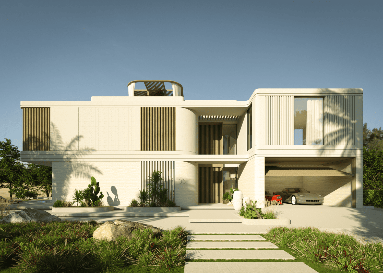 Project general facts Inspired by the natural environment, these exclusive villas feature gentle curves, smooth edges, and natural stone cladding, blending seamlessly with the landscape. Each home offers open living and dining spaces with flexible layouts, including additional guest rooms. The bedrooms include private balconies, providing personal outdoor retreats. From the entrance, the villa offers sweeping beachfront views. The ground floor enhances waterfront living with an open plan living, dining, and show kitchen seamlessly connected to the outdoor pool deck. An additional guest room provides garden access. Upstairs, all bedrooms face the sea, feature balconies, and offer private outdoor spaces. An internal stairway leads to the rooftop, which includes a seating lounge and plunge pool, offering a stunning vantage point. NB Collection offer an immersive garden experience. Articulated spaces integrate the garden into the home, creating a unique indoor-outdoor connection. The centrally located entrance provides easy access to all ground floor areas. A double-height space maximizes façade openings toward the front gardens, enhancing visual connection. Living, dining, and kitchen areas open directly to the outdoors. All four first-floor bedrooms face the gardens, offering scenic views. The rooftop features a plunge pool and lounge with sea views. Integrated parking and elegant façades blend luxury with modernity.